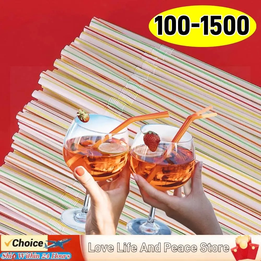 100-1500PCS Colourful Drinking Straws Flexible Plastic Straws Multicolor Straws Beverage Straws for Home Parties Milk Juice Drinks Cocktail