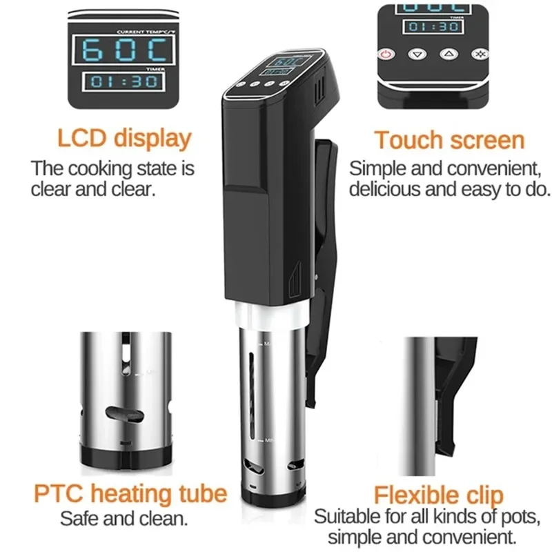 1000W Sous Vide Slow Cooker Machine Sturdy Immersion Heater Circulator LCD Digital Timer Precise Temperature Kitchen Gadgets