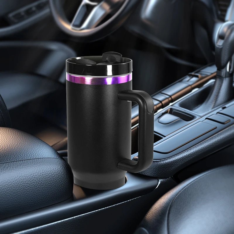Product name: 40oz powder coated purple rim plated black tumbler for laser printing