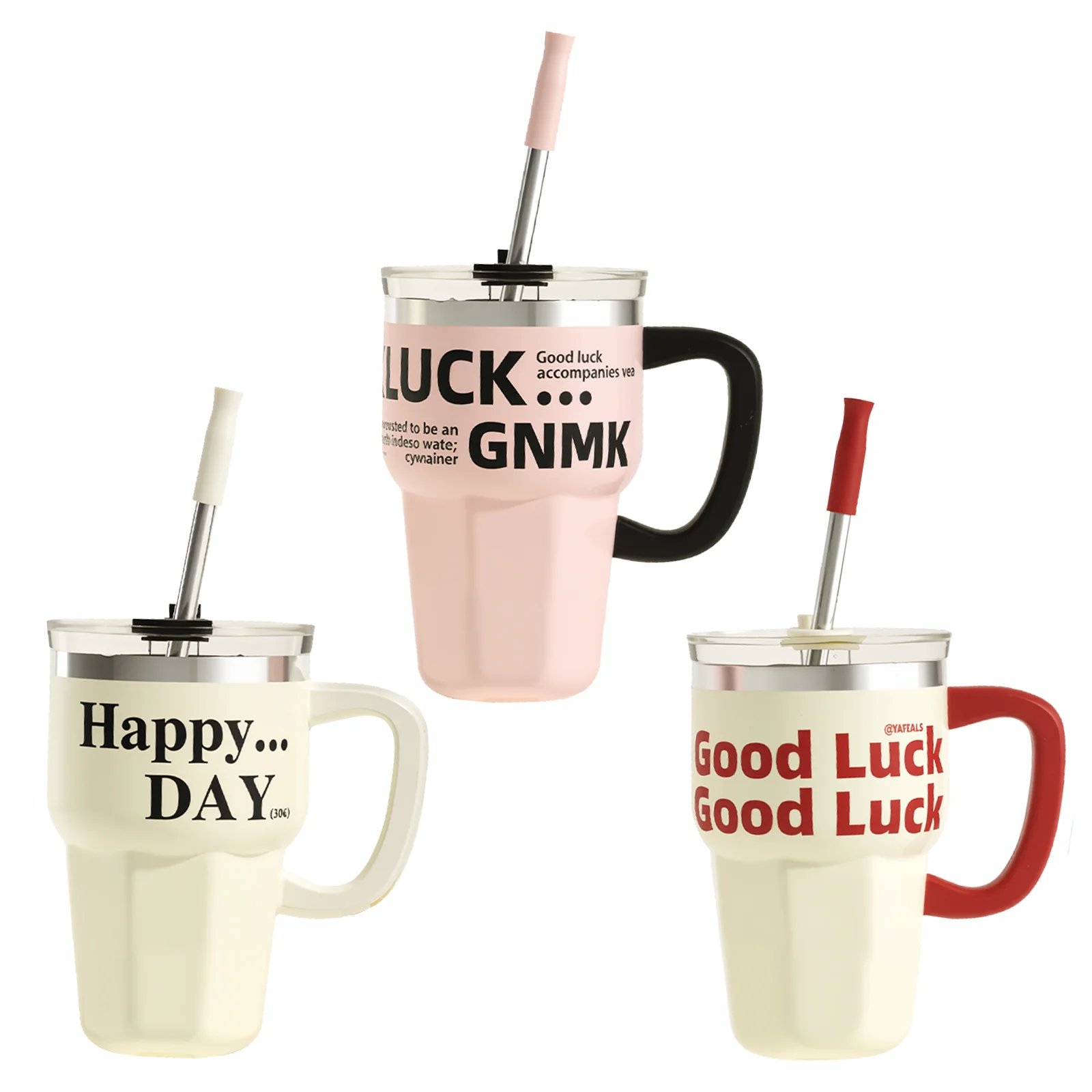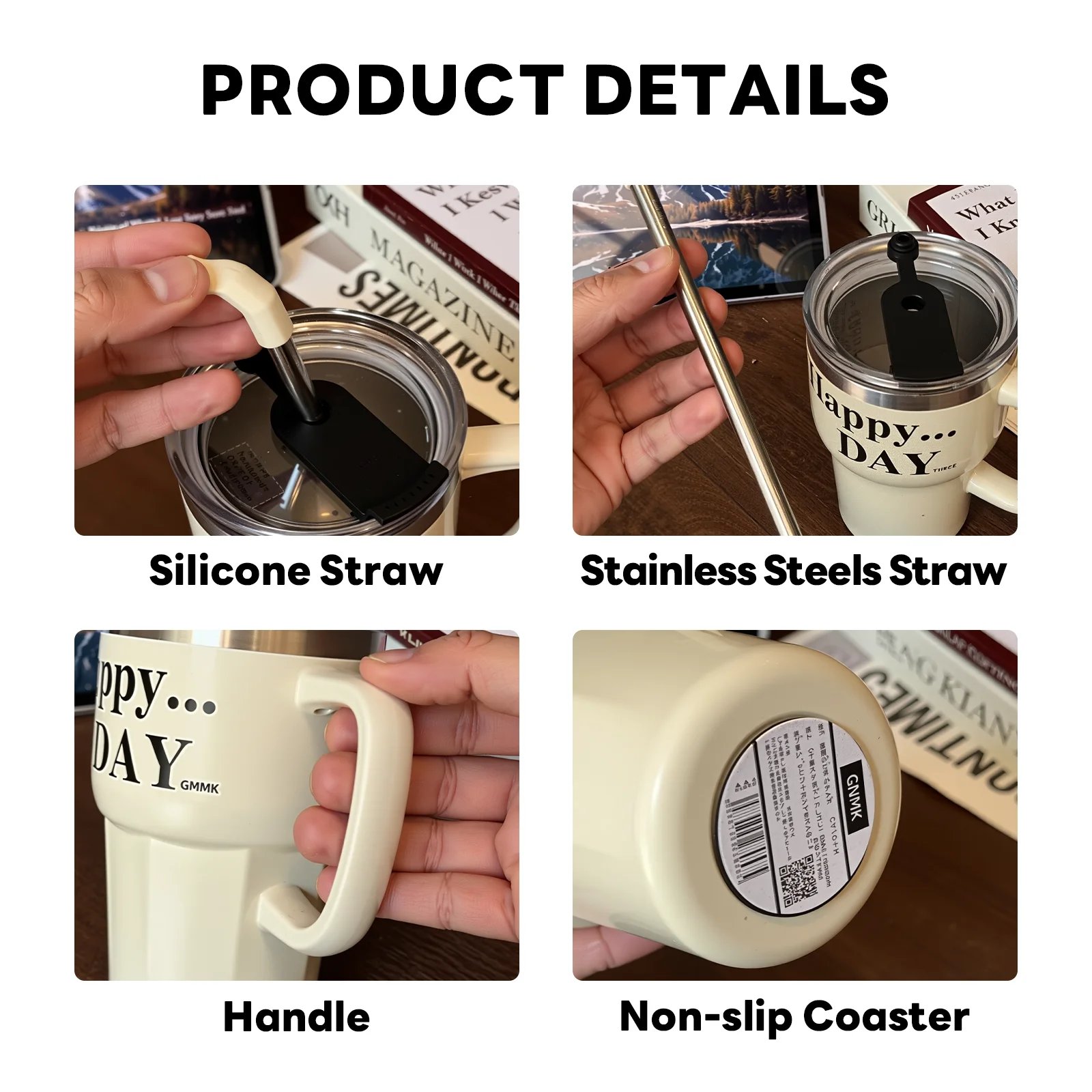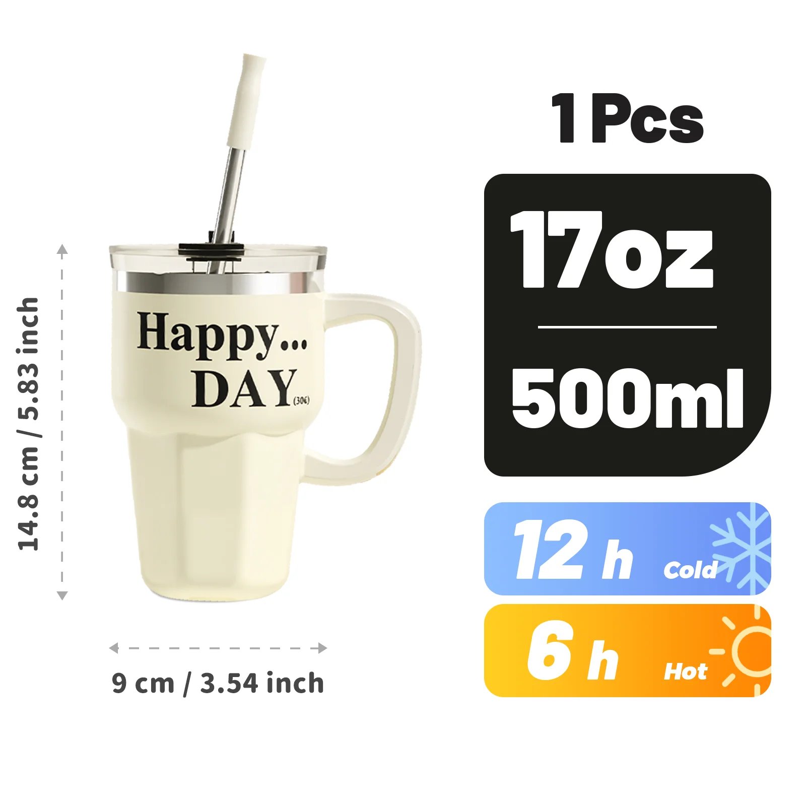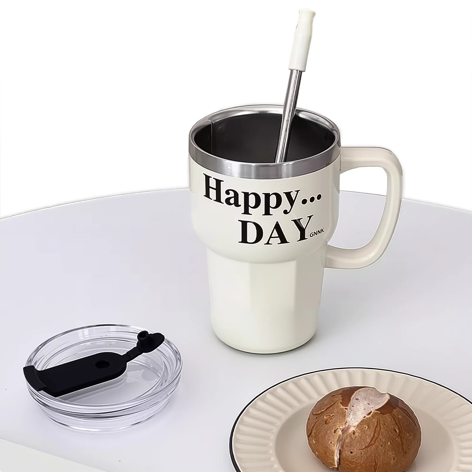 20oz Vacuum Insulated Tumbler with  handle  straw,  Uniquely  coffee mugs for women , 316 Stainless steels Cup with Happy day pr