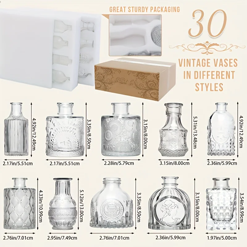 30pcs bud vase set, small vase glass bud vase bulk, small vase for centerpiece, mini vase set cute vintage glass vase for wedding home centerpiece table decoration
