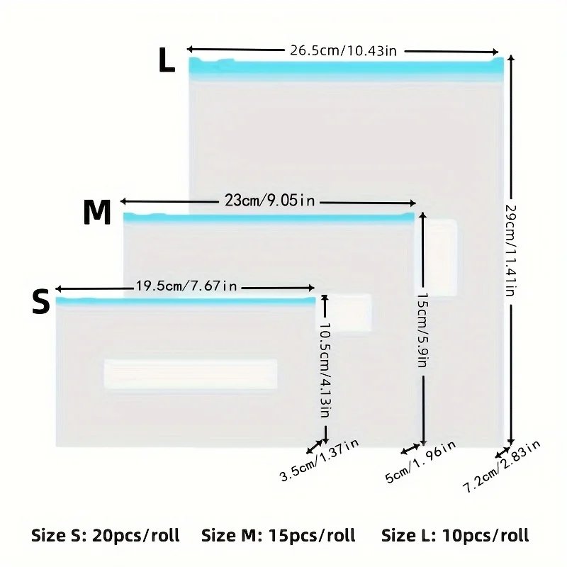 45 Pcs Airtight Food Storage Bags,Zippered Bag Sealed for Fruit, Grain, Vegetable, and Meat Fresh-Keeping Storage,3 Size