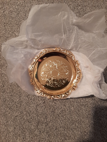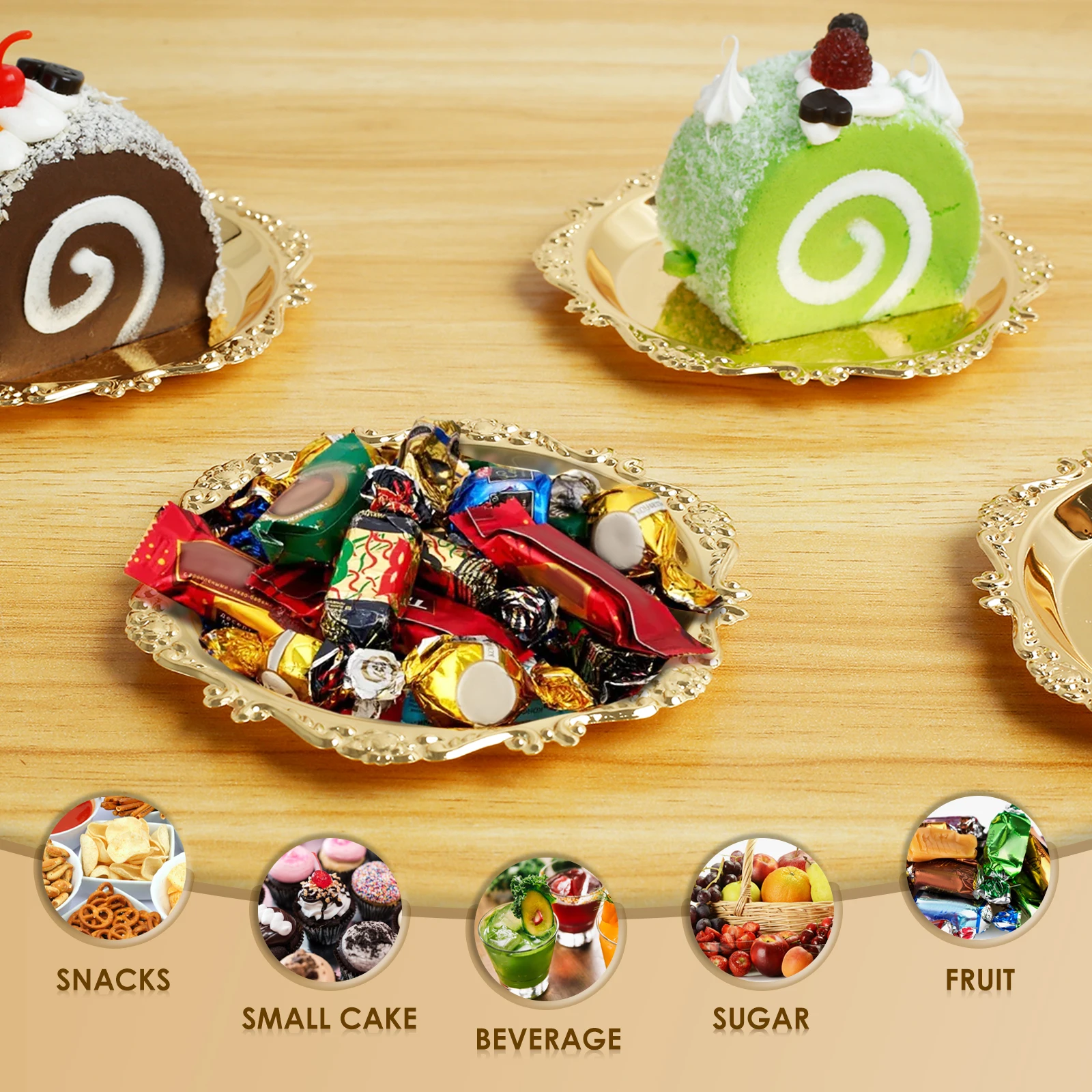 Use: Wall decorations; keys, jewelry and make-up retro exquisite gold small tray; party fruit cake tray