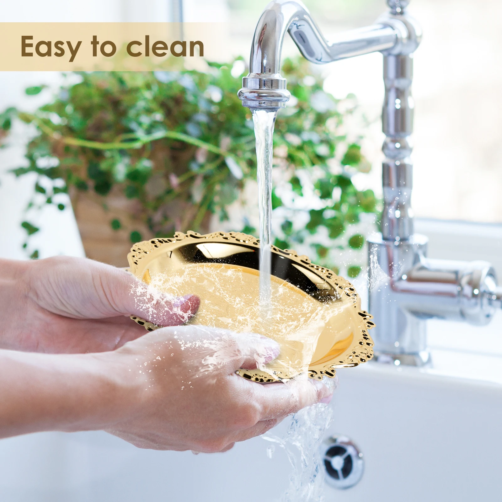[Easy to Clean] The flat and smooth surface of the small golden plate makes it easy to clean and less likely to leave stains on it. Supports quick cleaning after party, saving your time and bringing you more convenience
