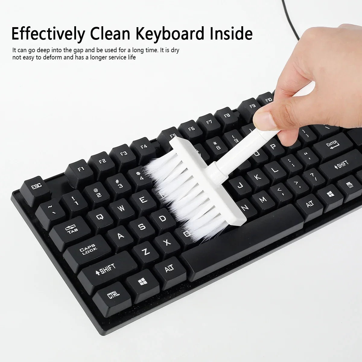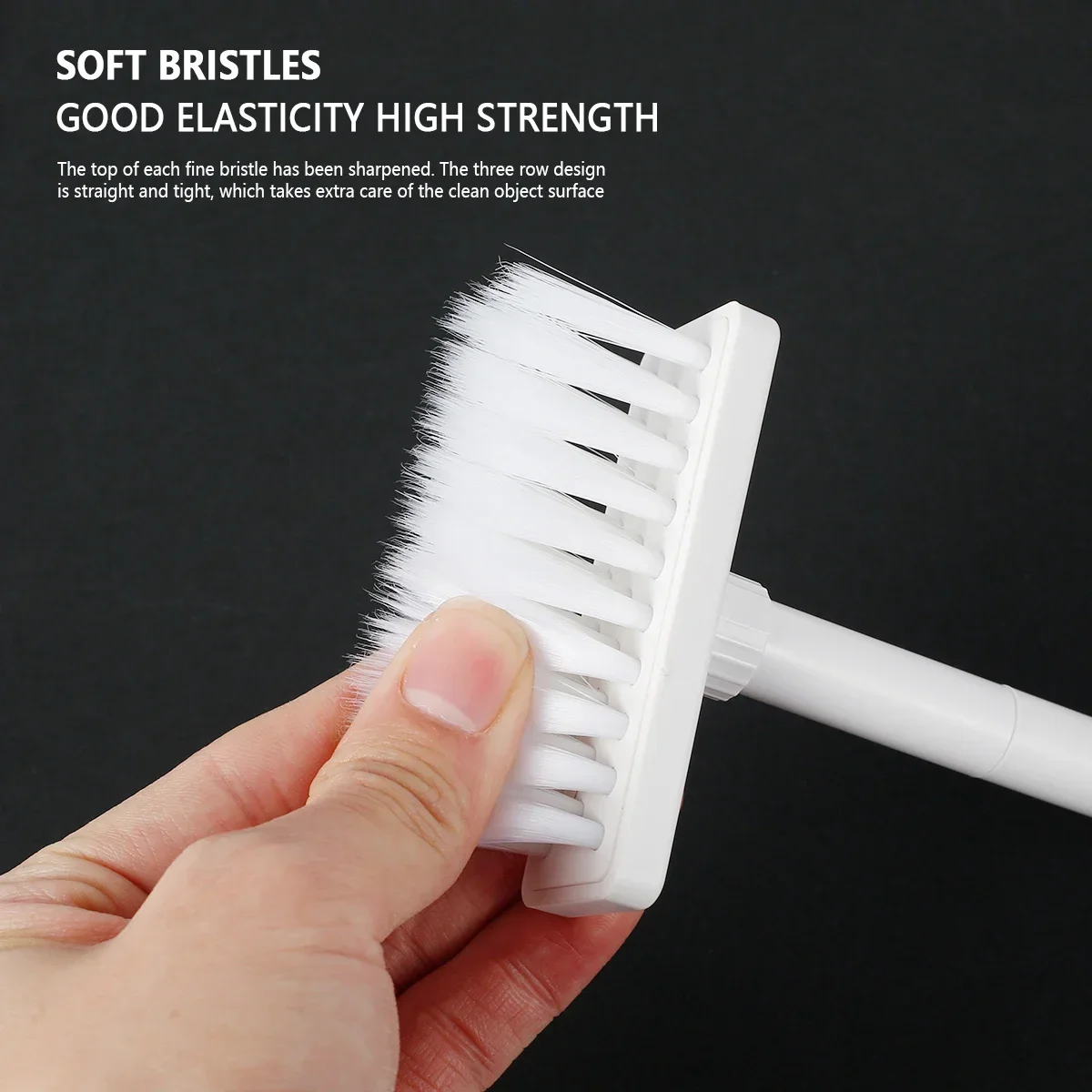 【Keyboard Brush】The keyboard brush is made of nylon bristles with moderate softness and hardness, 3-row design with high pore strength, good elasticity, stiffness and compactness, more labor-saving friction.