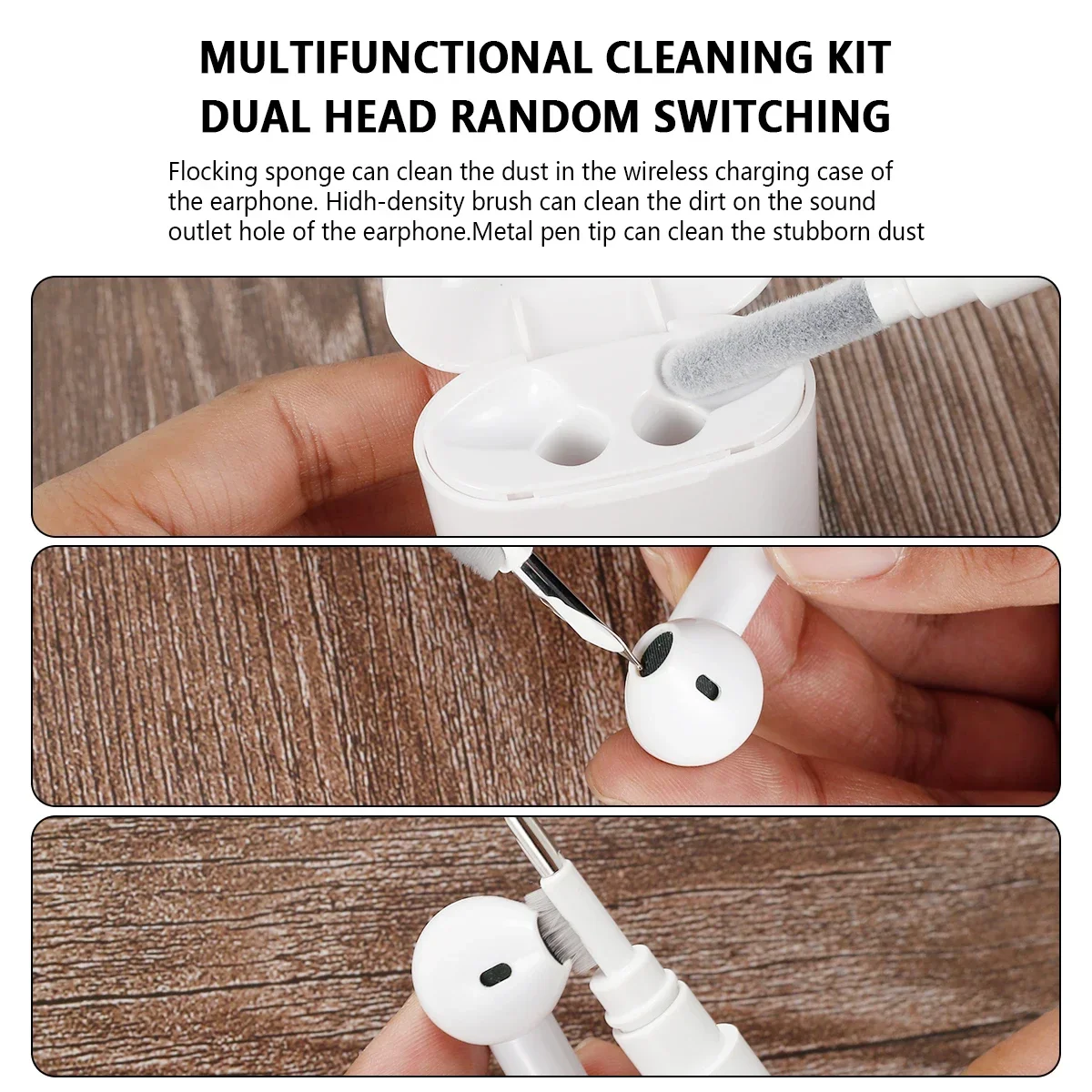 【Earbuds Cleaning Tool】The metal pen tip can clean the small parts and holes of the earbuds. There is a soft brush above the pen tip which can deeply clean the small parts and holes of the earbuds. The flocking sponge end cleans the charging bin.