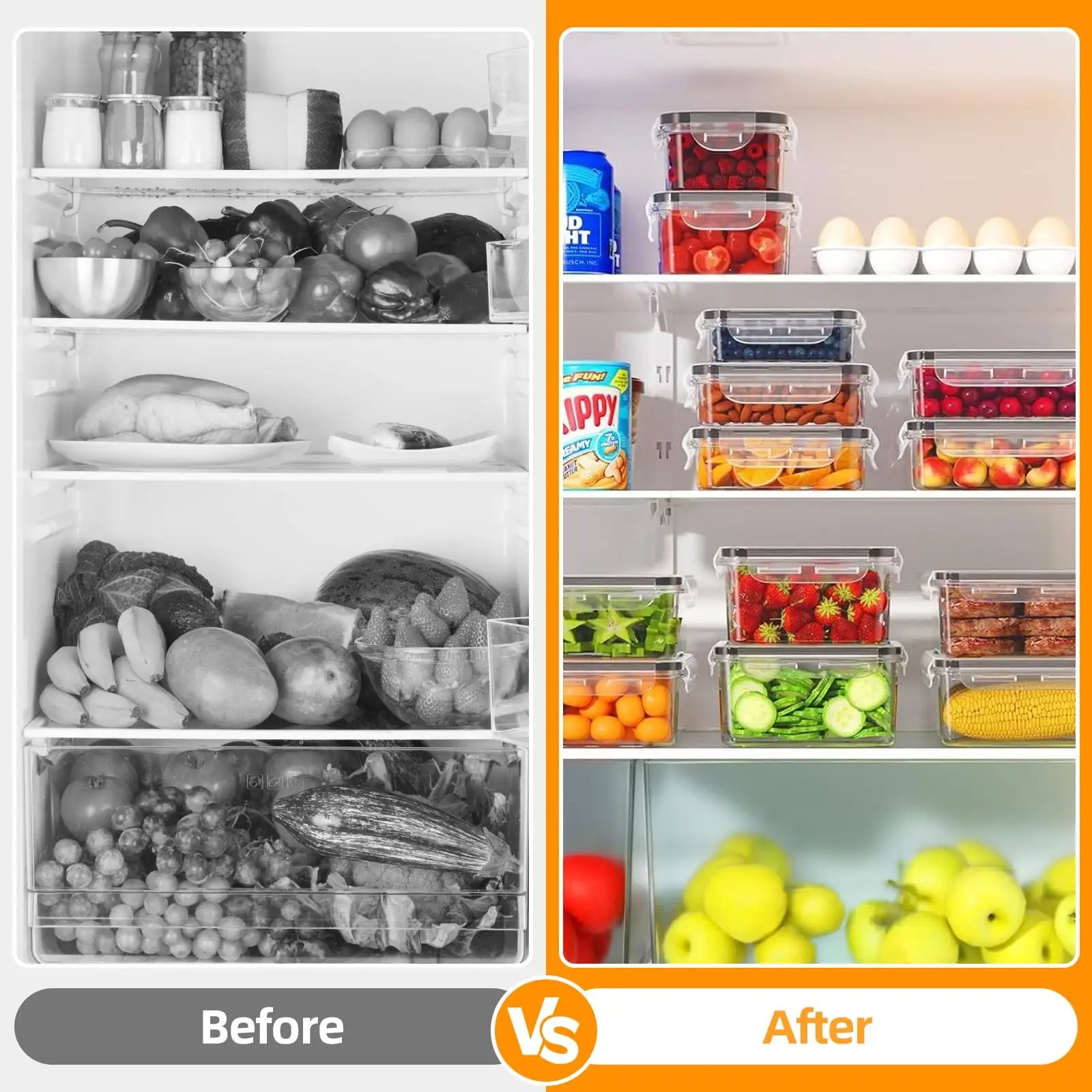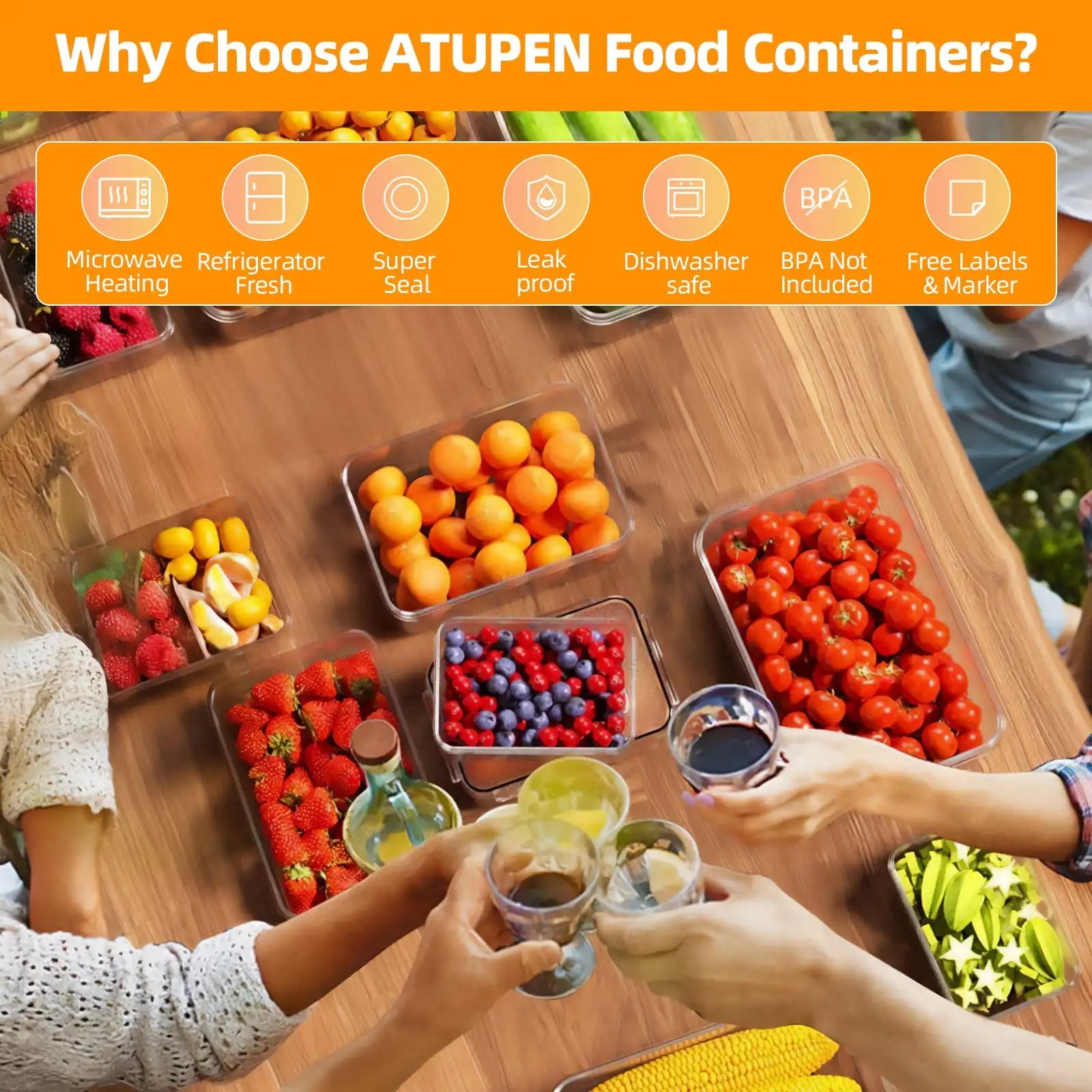 SAFE AND DURABLE: Plastic food containers with lids are made of polypropylene, BPA-free. Our tupperware containers plastic can be stored in the fridge, heated in the microwave or washed in the dishwasher. Please remove the lids when heating to avoid vapour build-up.
