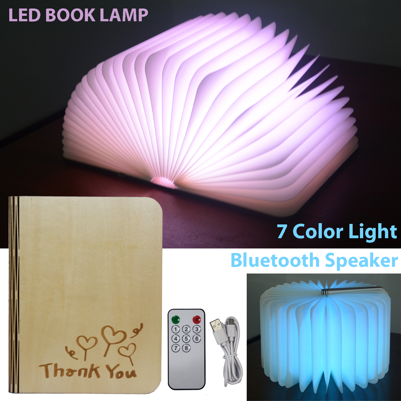 7 Colors Folding Book Lamp with BlE, Portable light, Rechargeable LED Paper Lantern with USB Charge Cable, Bedside Lighting, Indoor Color Changing Wireless Blutooth Speaker Player Light with Remote