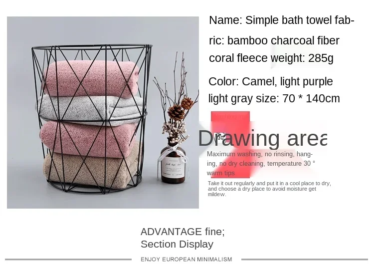 1. This is an excellent towel and bath towel with high cost performance. The product is made of 30% Microfiber fibre + 70% Bamboo charcoal fibre and has no irritation to the skin. Moreover, the product has excellent water absorption, fluffy and soft, high color fastness and no peculiar smell, green color, environmental protection and other advantages.