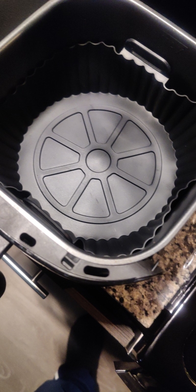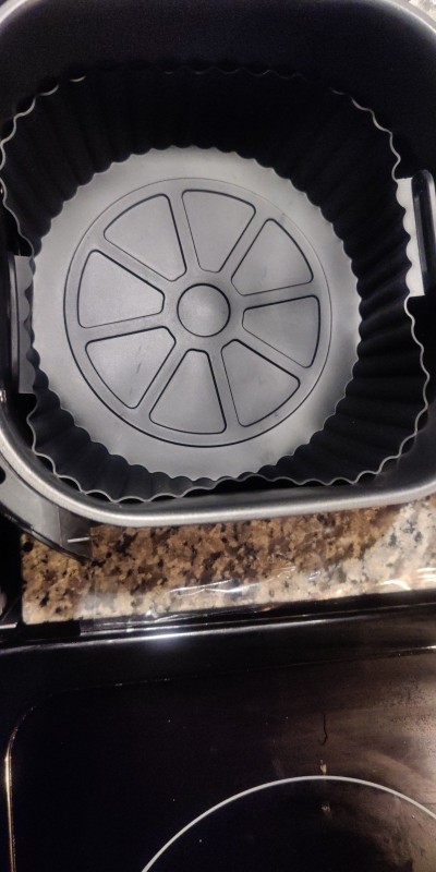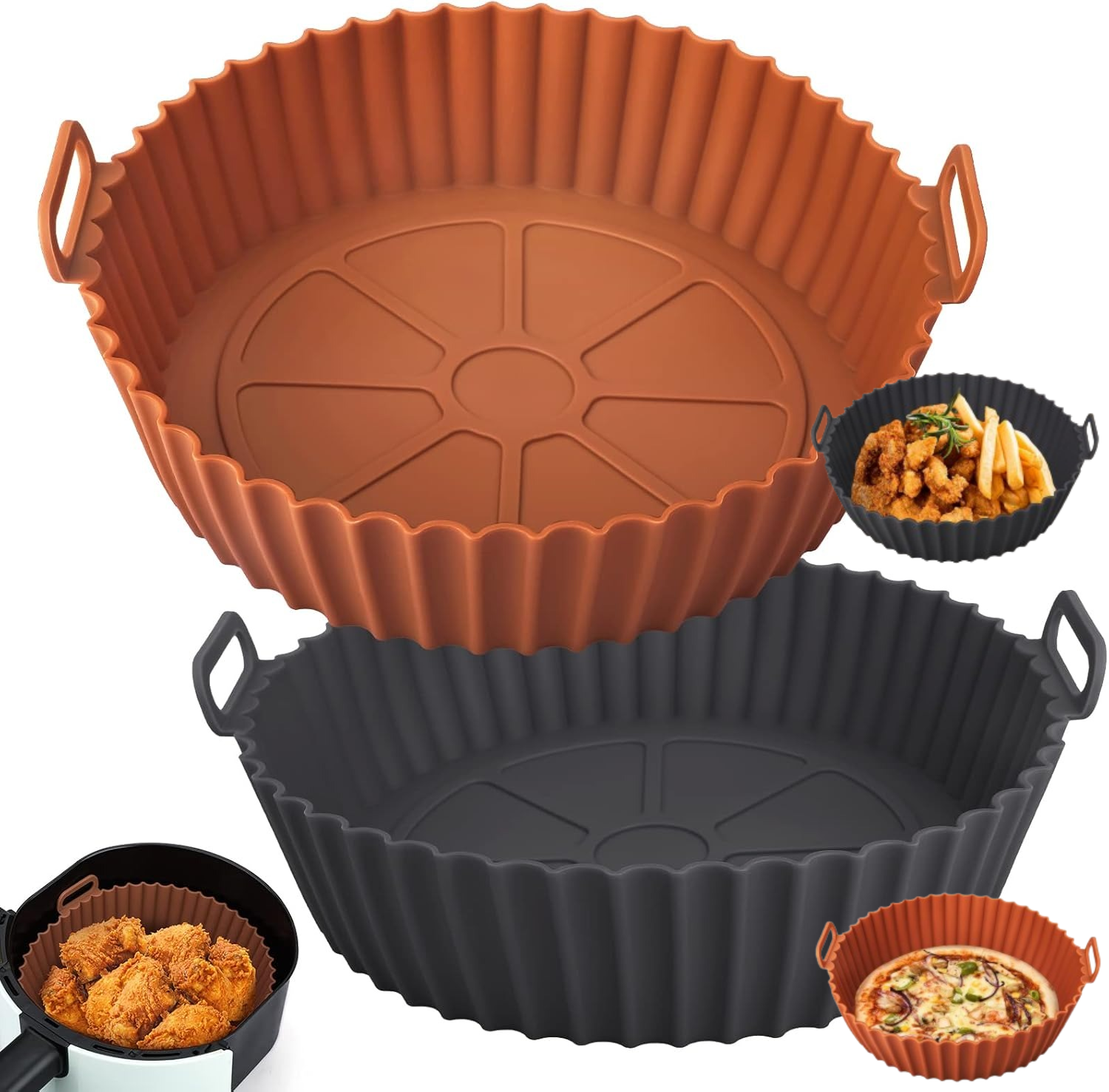 【Easy to use】The air fryer silicone bowl has handles on both sides, making it easier to take out food and transfer it to a plate or bowl with the help of tools. Be especially careful when removing the pan from the basket! The silicone air fryer inner pot is still hot. Double-sided can be used. The front can be used as an air fryer and the back can be used as a cake pan.