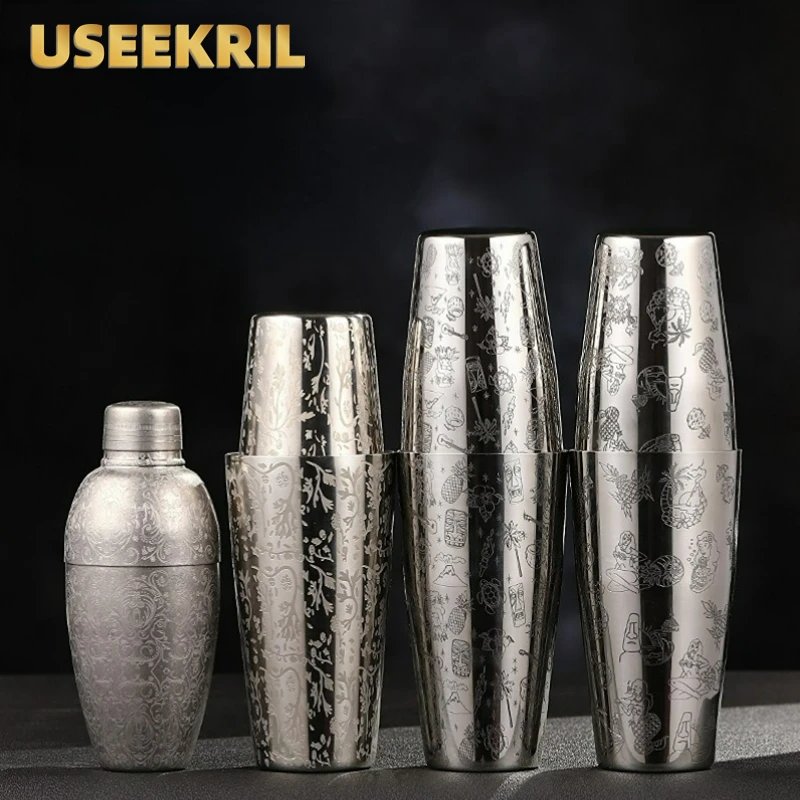 Bar Cocktail Shaker Boston Shaker Stainless Steel Engraving Shaker Bar Accessory Bartender Tools For Home And Bar