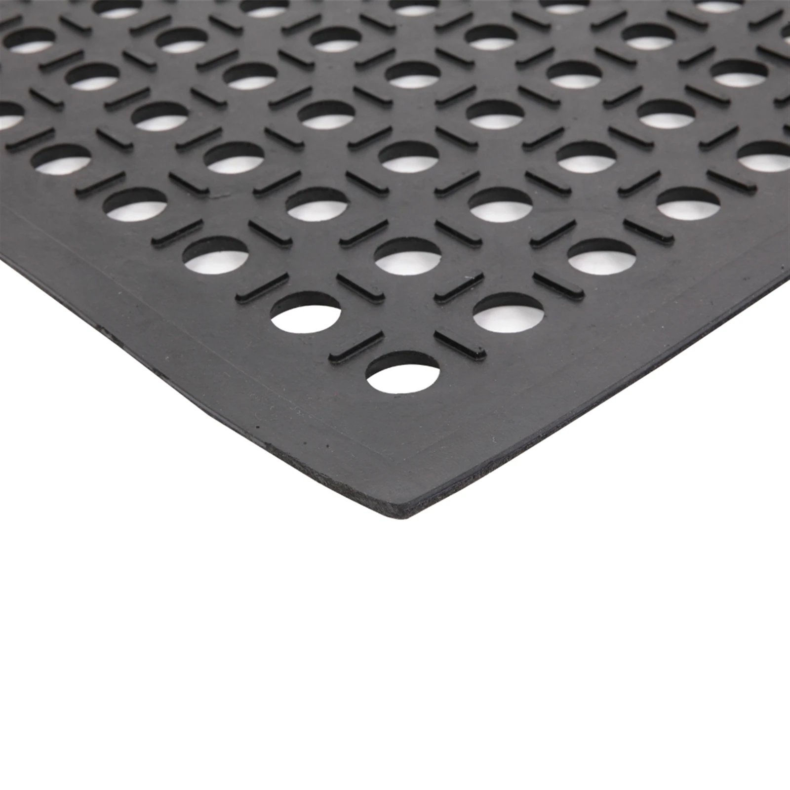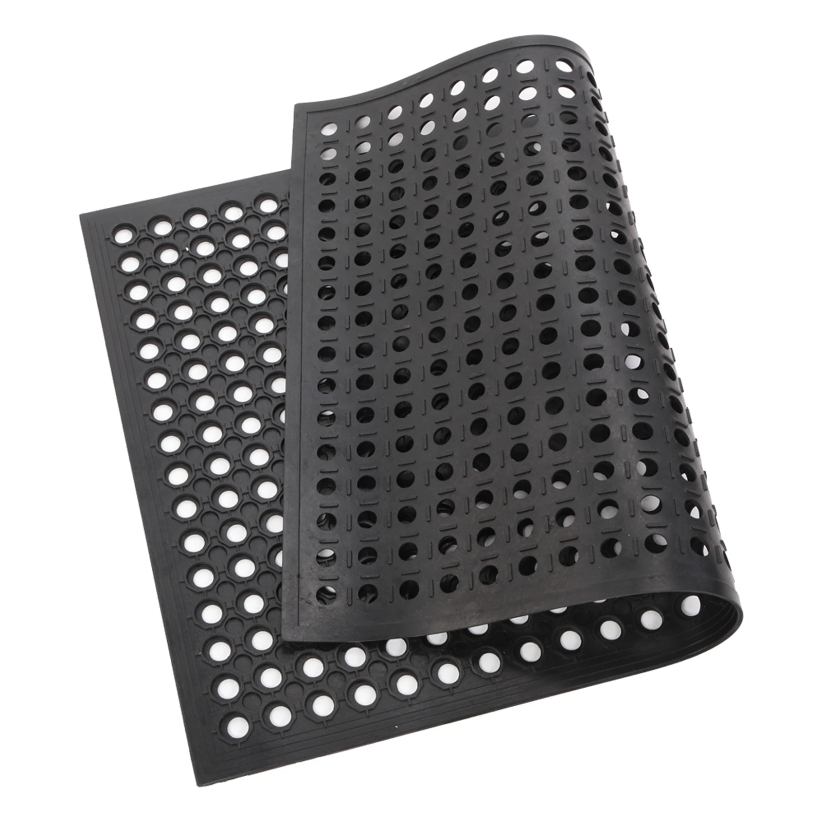 The Bar Kitchen Industrial Multi-functional Anti-fatigue Drainage Rubber Non-slip Hexagonal Mat features large hexagonal drainage holes that help to reduce the amount of slippery liquids and oils left on the floor and prevent dangerous accidents. Hence, it is ideal for uses in bar, kitchen, restaurant, as well as warehouse or other industrial areas where moisture and heavy foot traffic are a problem. Made of high-grade, eco-friendly rubber, it is sustainable for long-lasting use. Even better, it is water resistant and easy to wash clean. Don’t hesitate to buy now! It surely is worth your investment!