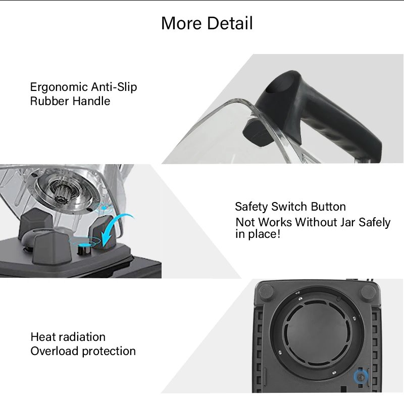 1. As soon as you received the blender, please add some water inside the container to test, DO NOT run it without anything inside as it’s a bad try for the coupling system, DO NOT grinding dry ingredients over 1 minute.