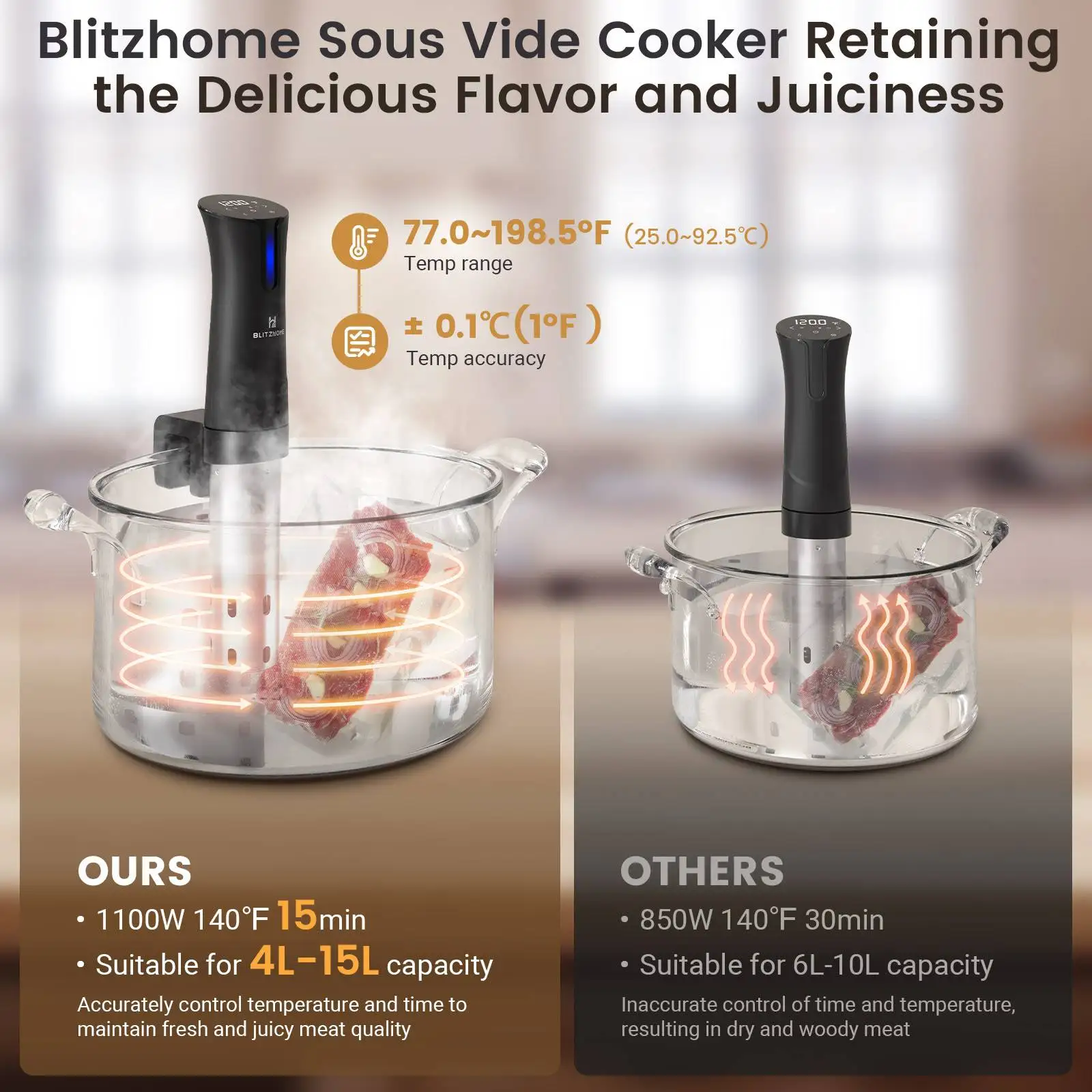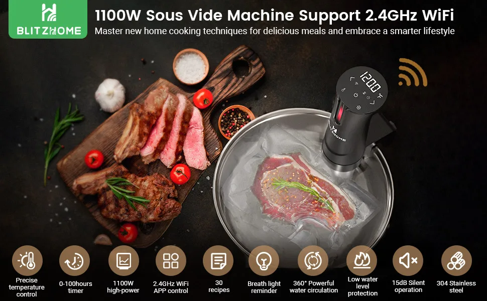 Sous Vide Machine, Blitzhome Sous Vide Cooker 1100 Watts,