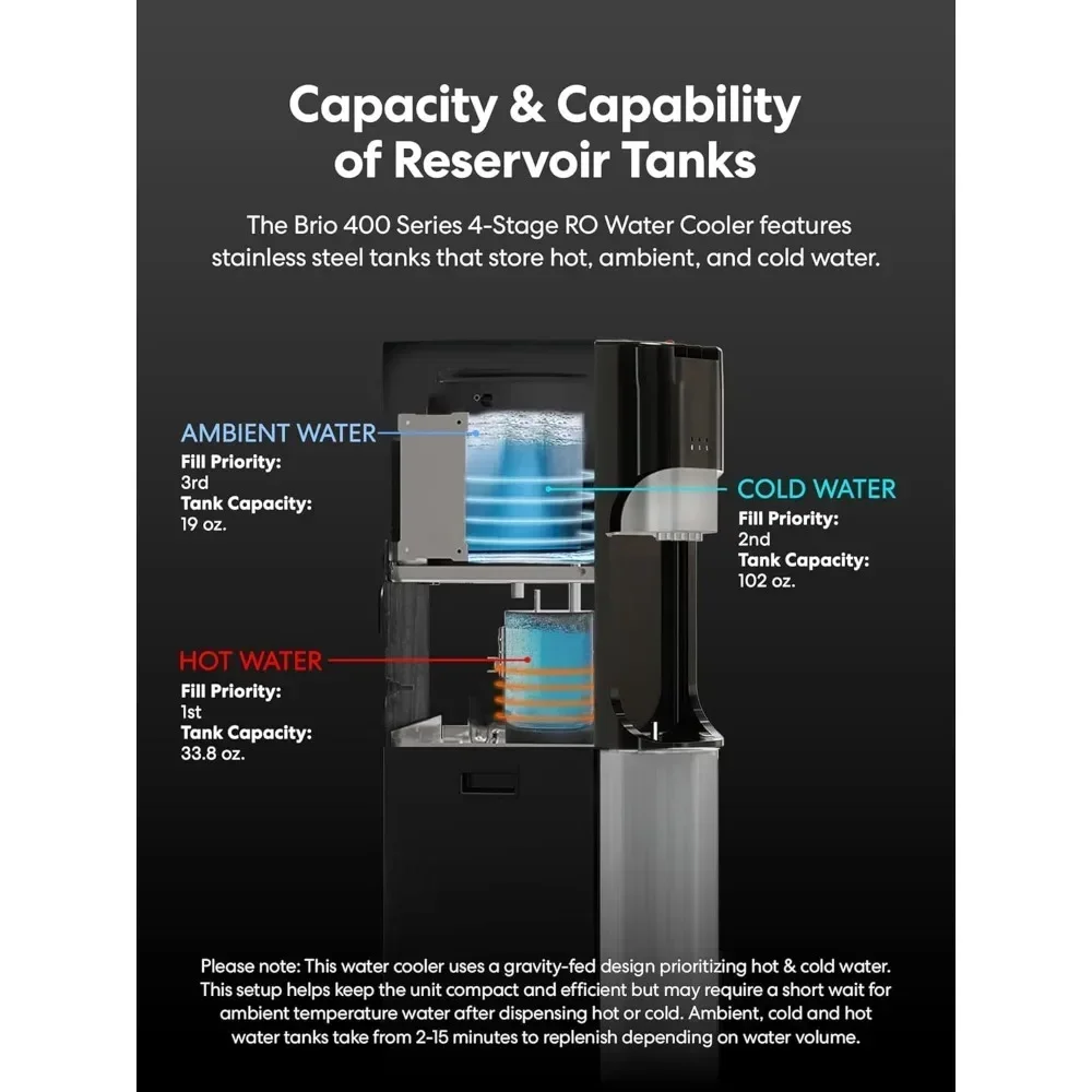 HOT, COLD & ROOM-TEMPERATURE WATER: Access to perfect temperature water has never been easier. Choose between soothing hot, refreshingly cool and ambient water for any and all your hydration needs. Immediately satisfy your thirst with either refreshingly cool water or enjoy a soothing cup of tea using the hot water option