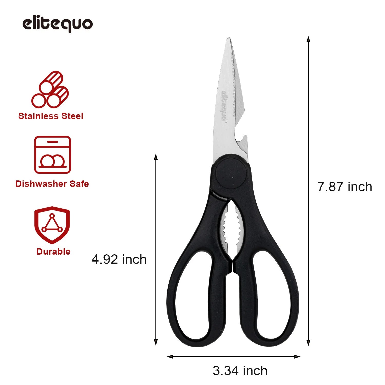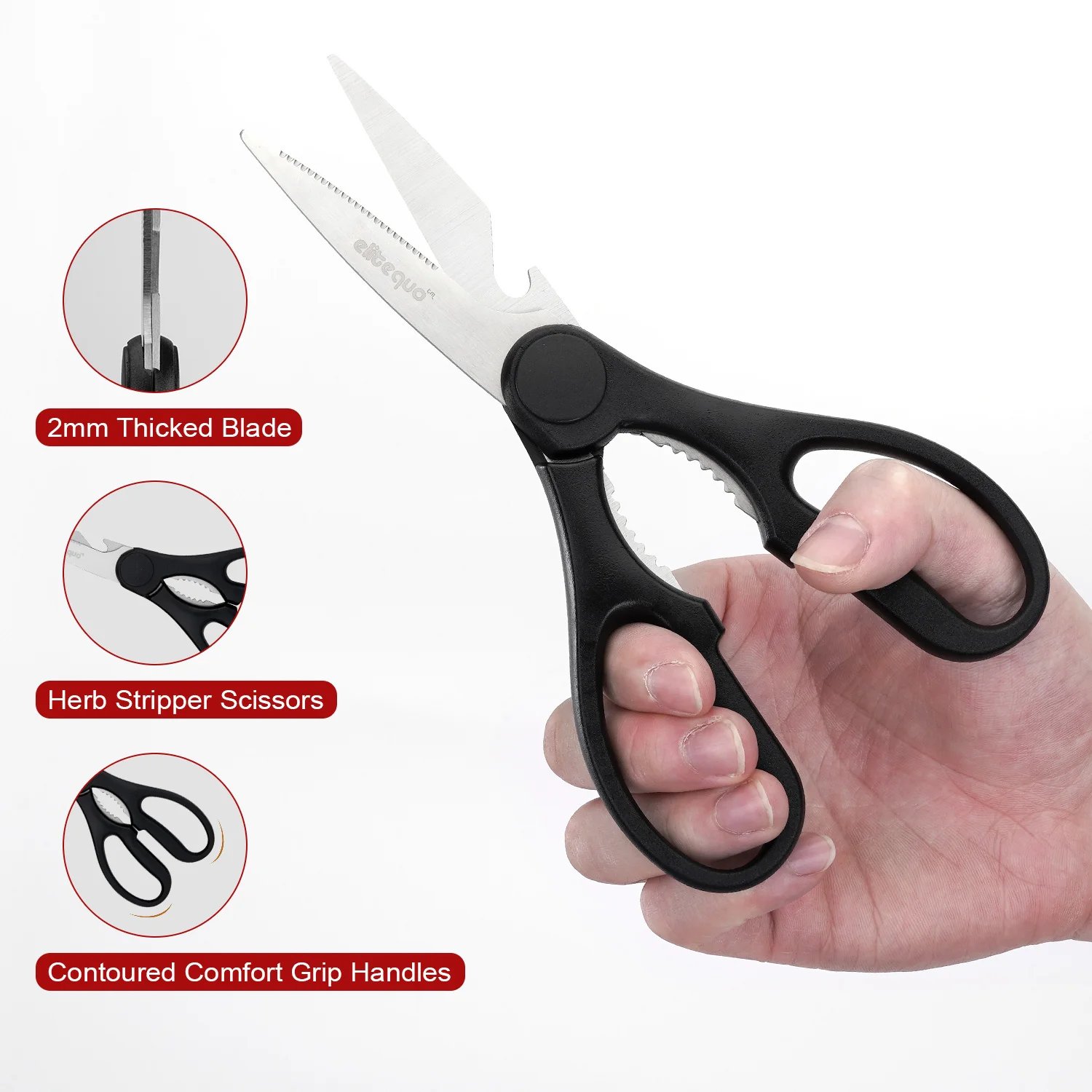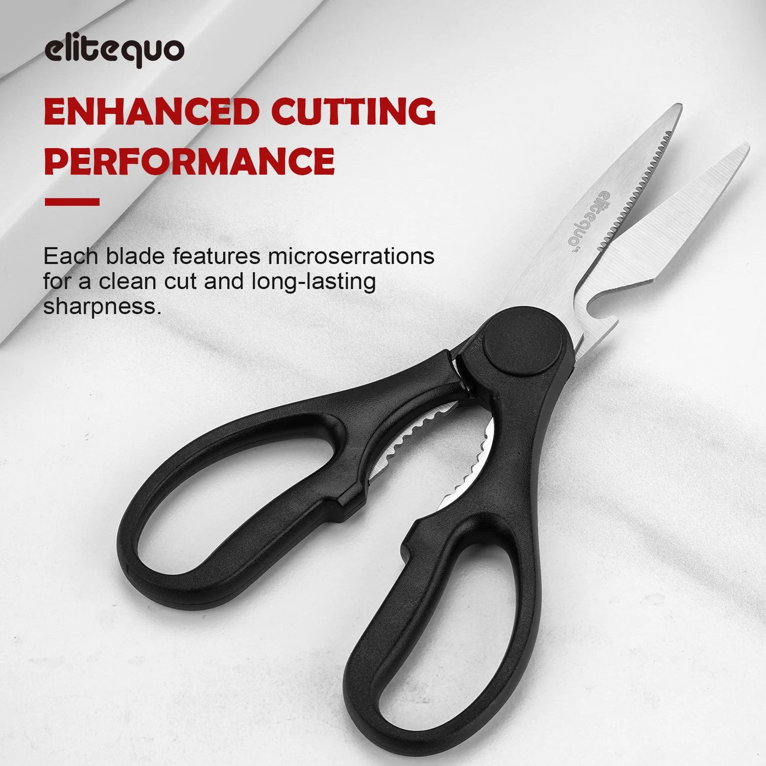 ELITEQUO All Purpose Kitchen Scissors, Heavy Duty Stainless Steel Scissors, Dishwasher Safe, Soft Grip Comfort Handle