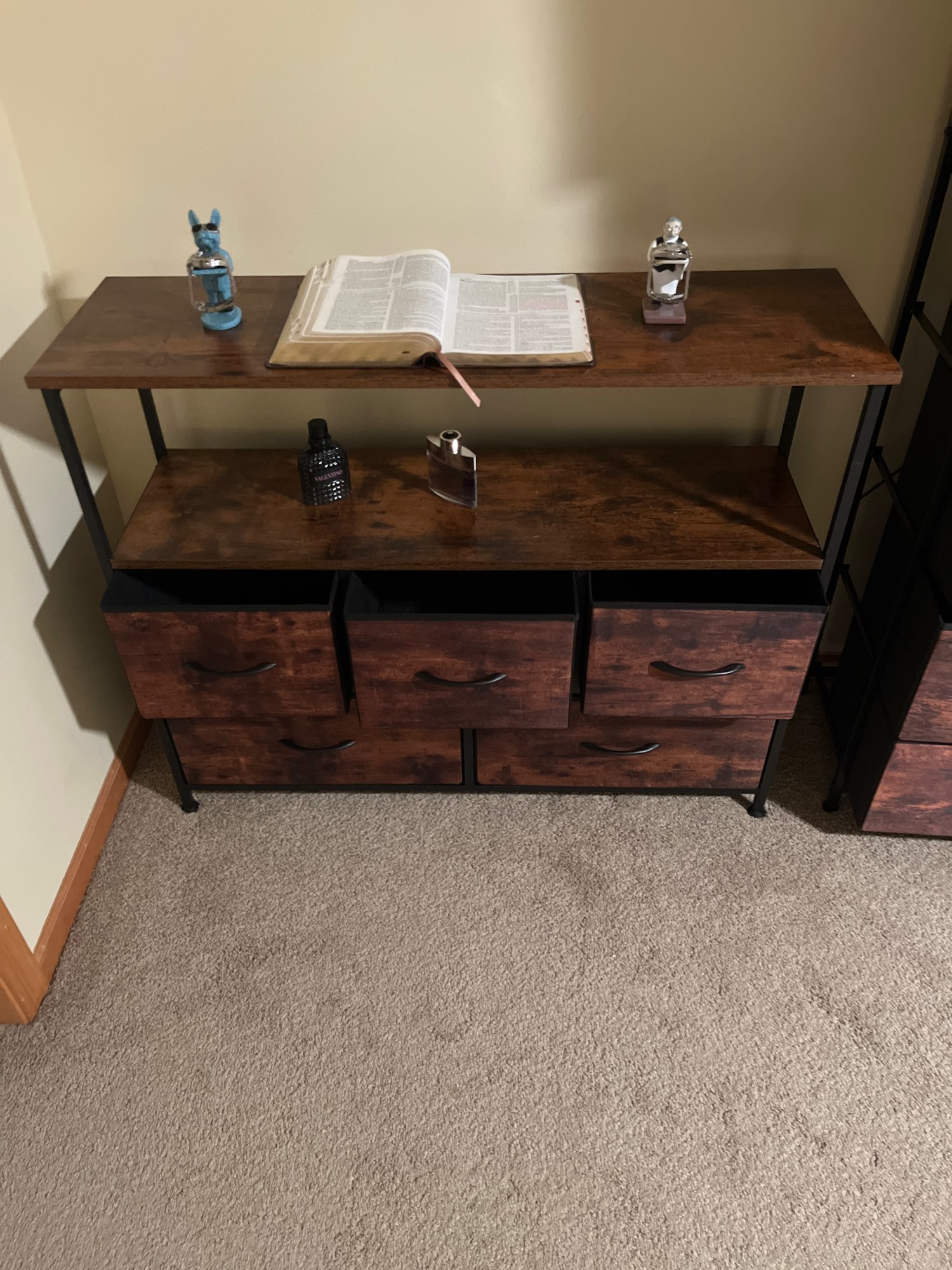Took about 30 minutes to assemble but it’s just as described and fits my space. I carried it upstairs and it’s perfect for my needs. Not too heavy, sturdy and holds all my summer clothes.