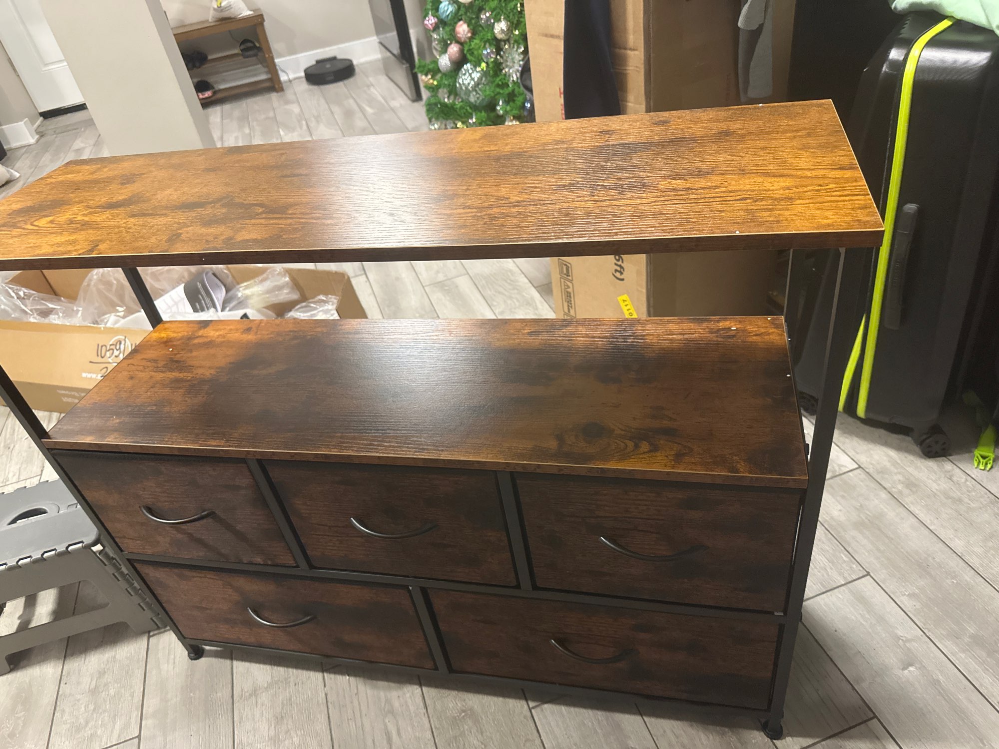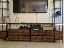 【Lightweight and Practical】The TV Stand features 5 fabric drawers, easy-pull handle and wooden board shelves, the whole dresser weight 28 lb, making it a lightweight and versatile addition to any bedroom or living room. The media console can serve as a space-saving alternative to a bulky TV stand, complement a TV console table, or function as an entertainment center in your home.