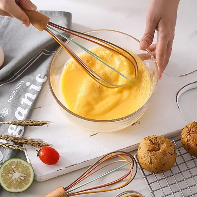 Kitchen Stainless Steel Rotary Whisk with Wood Handle – Semi-Automatic Hand Mixer for Whipping Cream & Eggs