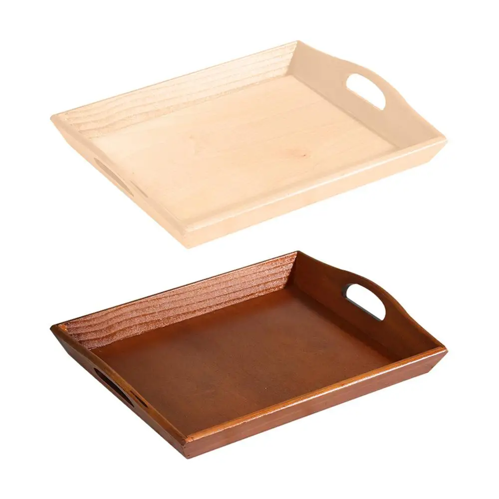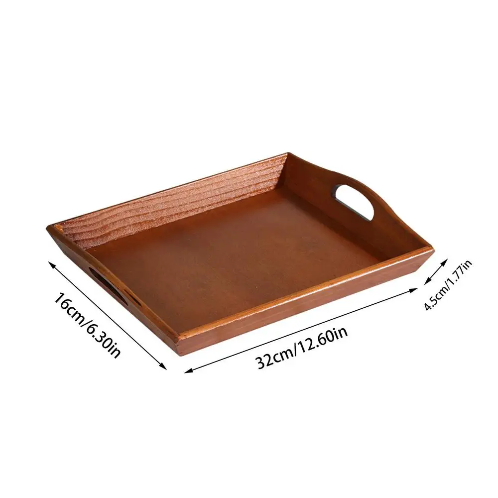 Large Capacity Wooden Vintage Serving Tray Thickened Dinner Platter For Restaurants Rectangular Tray With Handles For Home