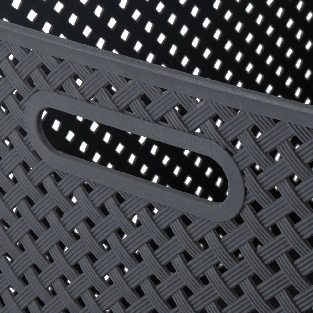 ‘ s Resin Wicker Storage Bin has a unique wicker design and is made of sturdy polypropylene plastic. 2 sturdy open handles makes it easy to carry Bin around from one place to another. It has a lightweight design and holds a multitude of items, organizing and de-cluttering homes. Wide selection of colors to fit any setting. These plastic storage bins are a stylish solution to all your storage needs. Use them on shelves, bookcases, closets or just on the floor to neatly hide away books, toys or other household items. It is a great plastic storage bin for all you lose items.