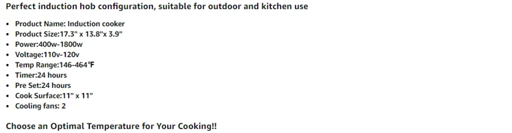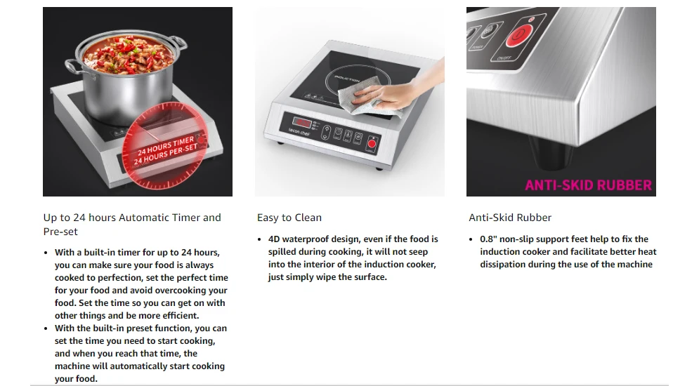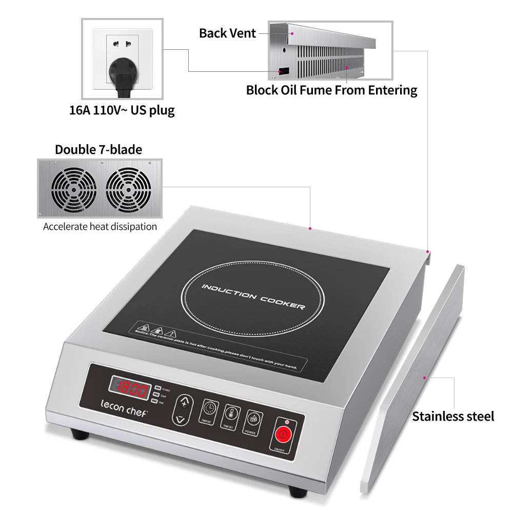 Leconchef Induction Cooktop Commercial Countertop Induction Cooker Electric Burner 10 Power&Temperature, Timer&Preset