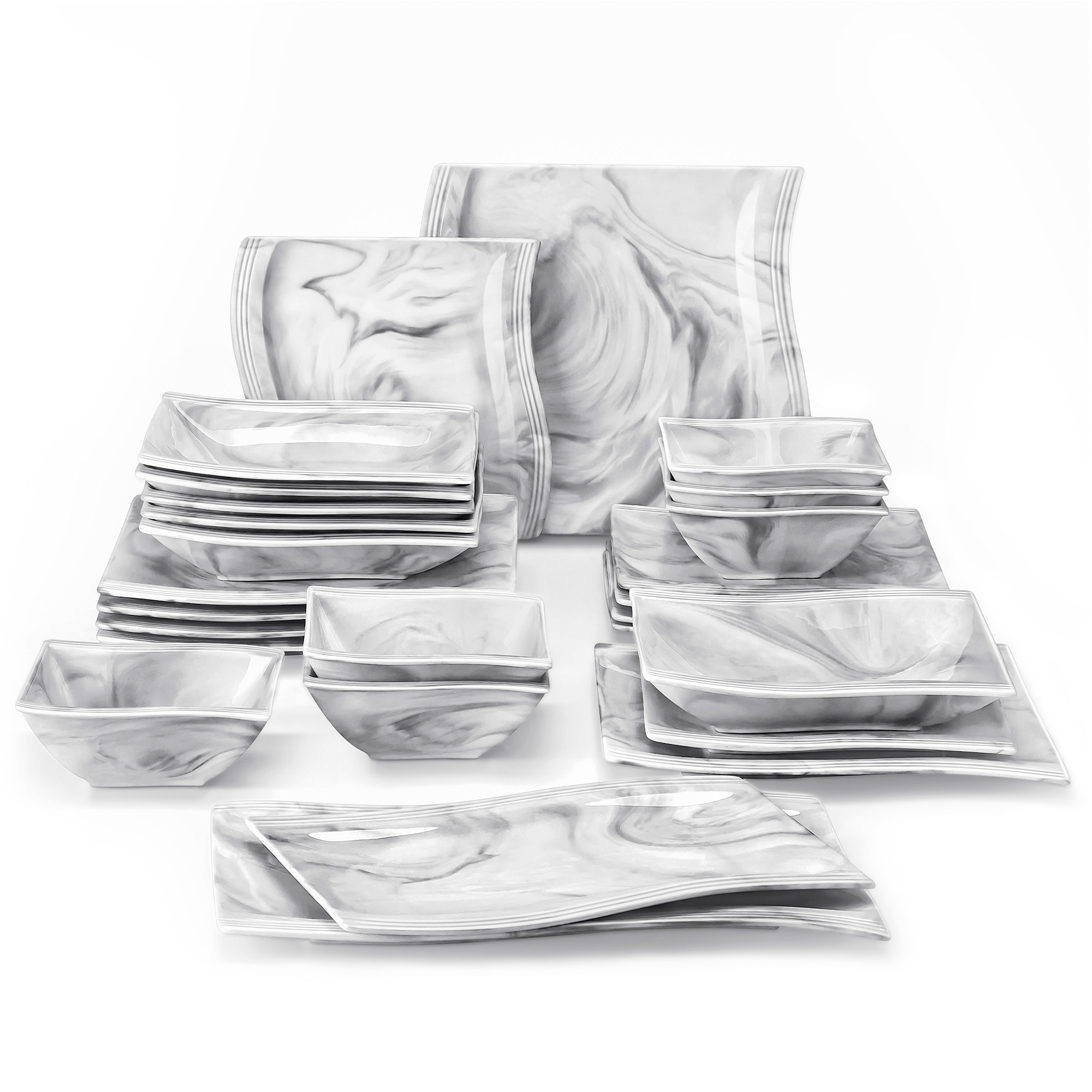 ● MALACASA dinner service sets are made of ivory white porcelain, FDA certified lead and cadmium free for everyday use. With classic square shape, making the dining table beautiful and elegant.