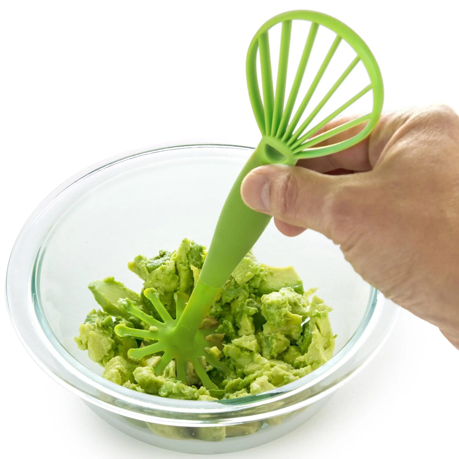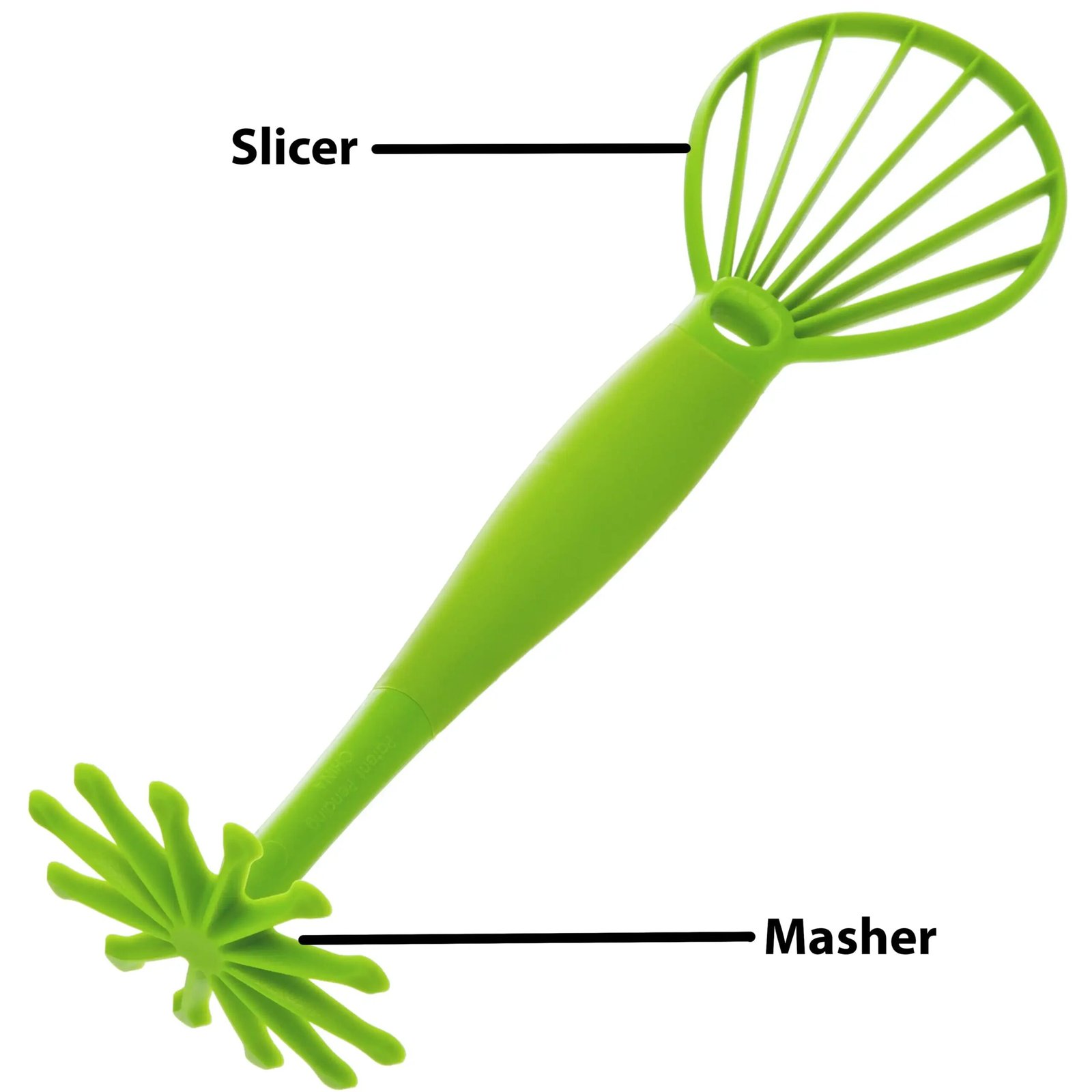 The Avocado Slicer and Masher makes guacamole effortlessly! One end features an oval shape with plastic prongs to evenly slice your avocado without getting your hands messy. The other end is designed to mash the slices into the perfect consistency. Not just for avocados, it also works great for smashing softer fruits and vegetables like raspberries, bananas, and more! The Avocado Slicer and Masher is a great tool for a multitude of tasks in your kitchen!