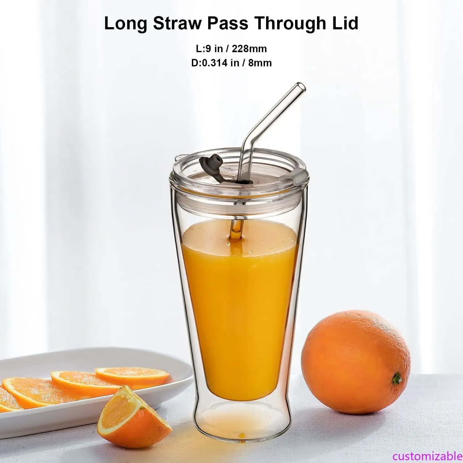 - Glass straws for 16 oz glass cups: 9 inch glass straws for tumbler 16oz – 20 oz cups, reusable glass straws for hot drinks、iced coffee、milk、juicing.