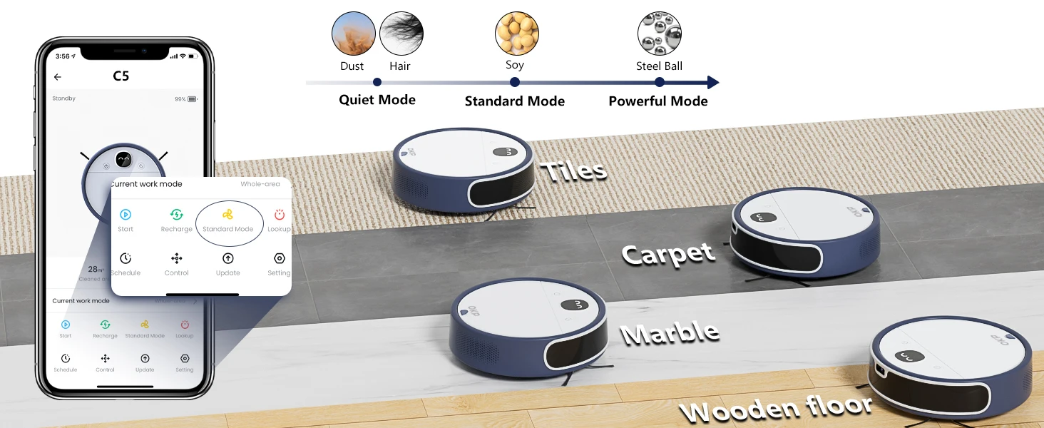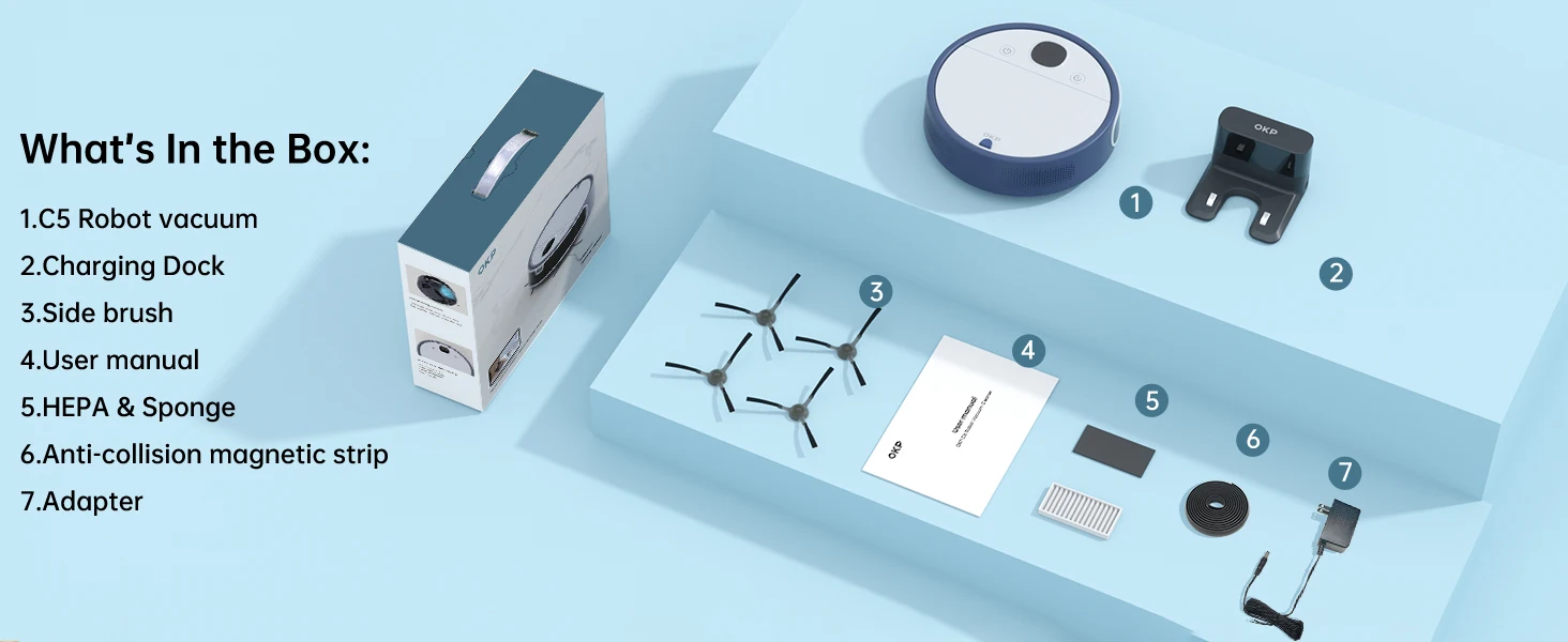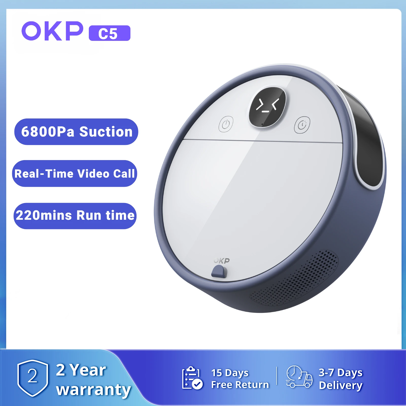 OKP C5 Robot Vacuum Cleaner with Real-Time Video Call, 6800Pa Powerful Suction, Wi-Fi/App/Alexa Control, Automatic Self-Charging