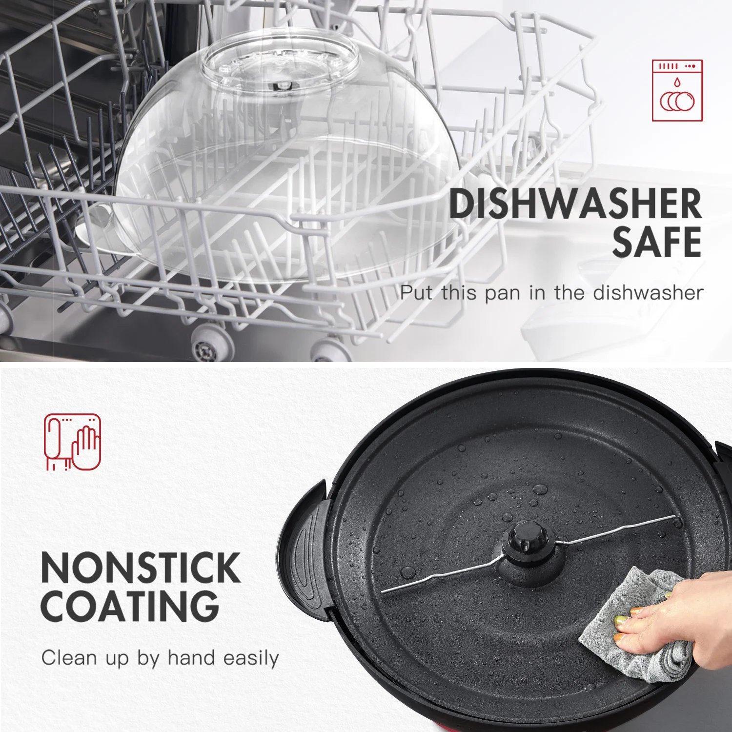 Easy CleaningNon-stick popping plate just clean by wiping it gently, and the detachable plate and transparent cover are dishwasher safety. |