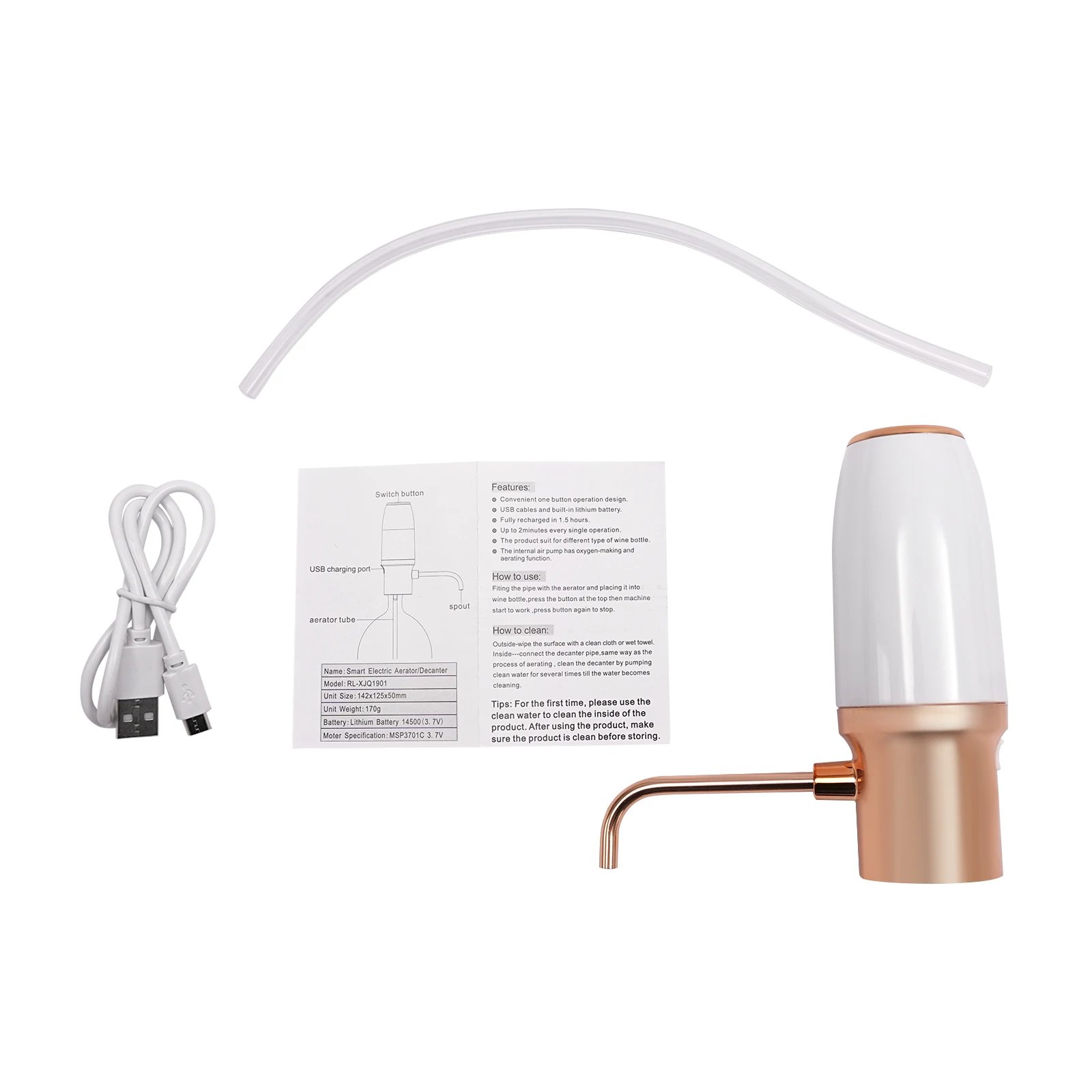 Rapid Recharge: This product has a built-in 800mAh lithium battery, which can be fully charged in 1.5 hours, and can satisfy about 50-80 bottles of 0.2 Gal red wine in a fully charged state, which is convenient for you to use.