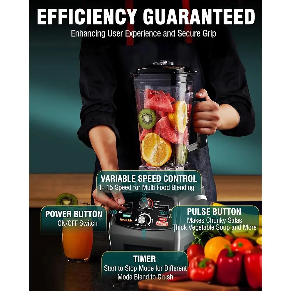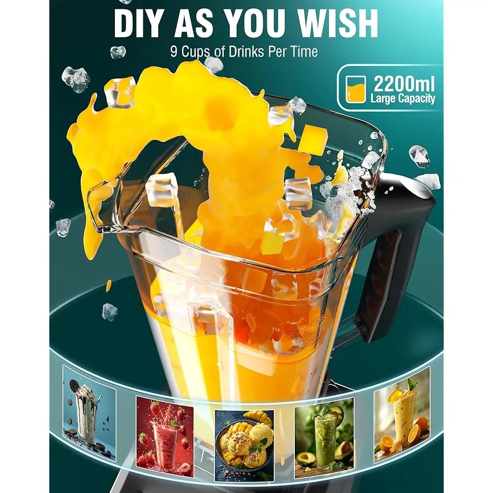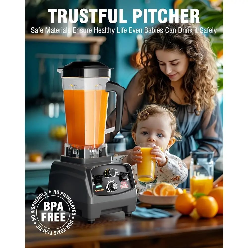 Professional Home And Commercial Countertop Blender -Adopt Max 1800W Power (3 Peak Horsepower)And Hardened Stainless-Steel Blade, Up To 30,000 Rpm And Makes Crushing Ice Faster And Blend Ingredients Smoother Than Other Blenders.