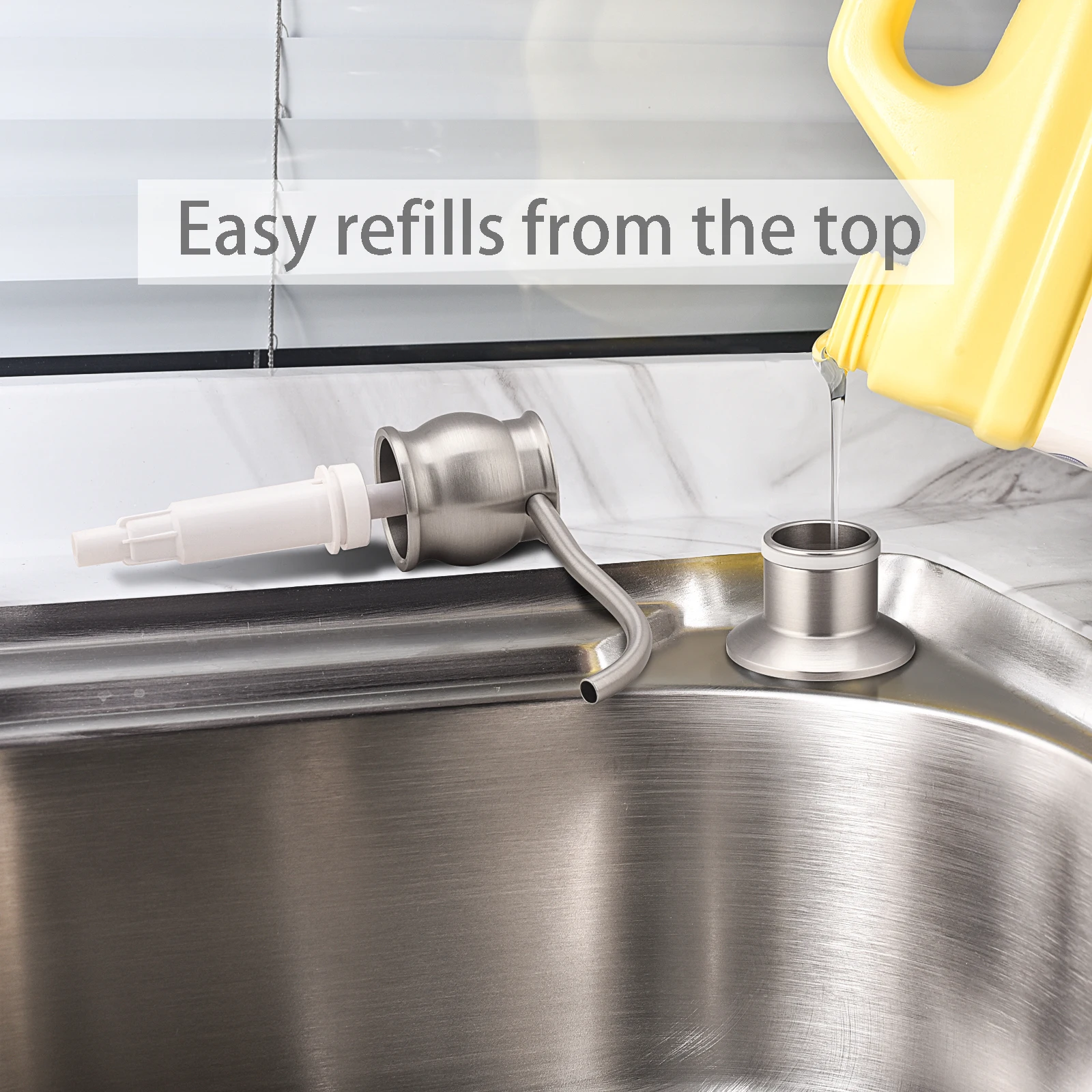 — Refilling this sink soap dispenser is a freeze. When the 17-ounce / 500ml liquid container is empty, simply remove the pump head and refill liquid soap from the top. There is no dripping under the sink.