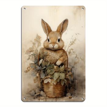 1PC Iron Metal Sign Basket Bunny Vintage Easter Wall Art Sign Farmhouse Living Room Kitchen Bathroom Bar Cafe Garage Decoration