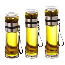 Glass tea infuser bottle tea flood cup 12oz/350 mL,double wall boro silicate portable travel tumbler mug leak proof for loose le