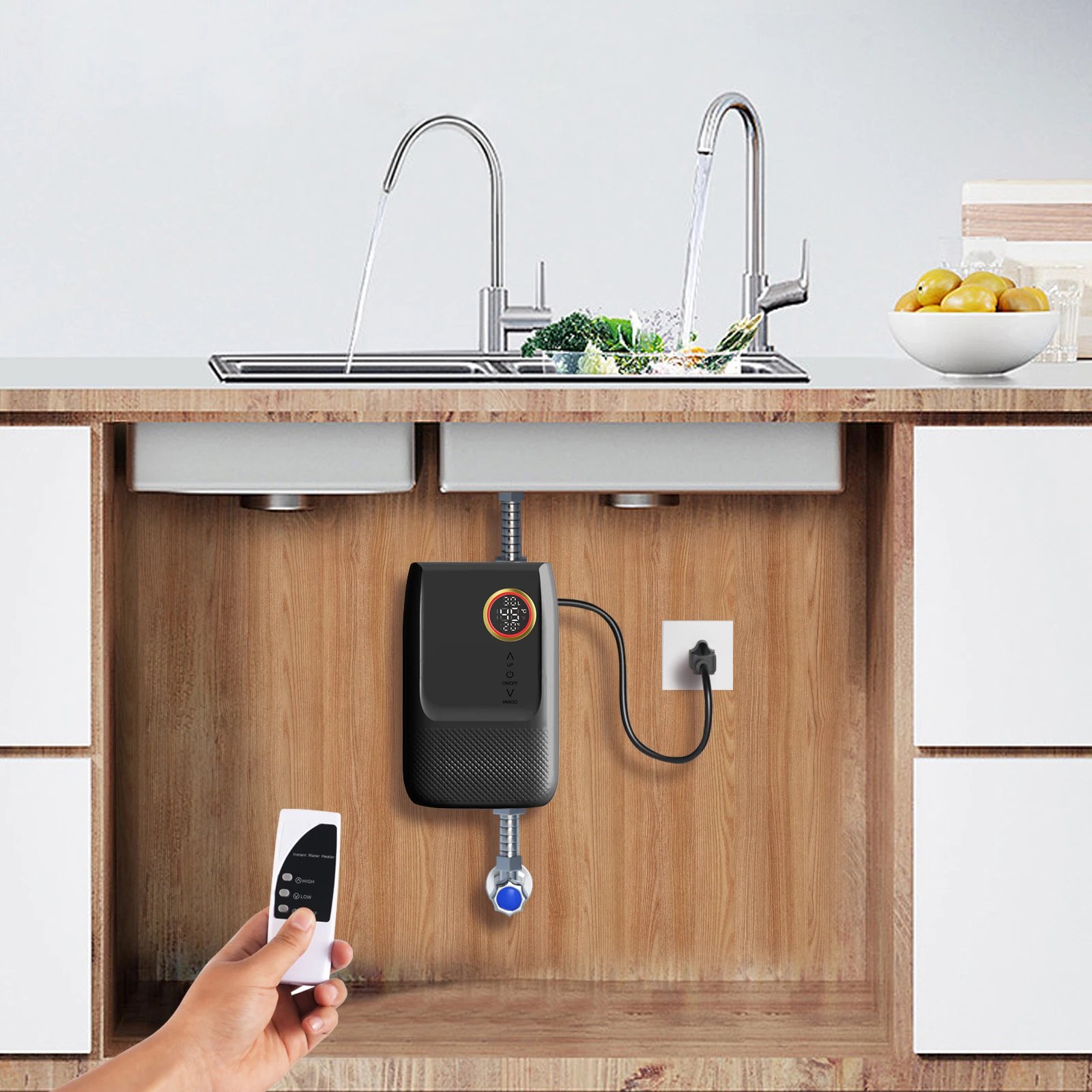 High Efficiency: 3000W power, cast aluminum heater, water and electricity separation technology, and one-piece structure, it conducts heat quickly, does not scale, and provides you with hot water in a short time, without the need for storage and preheating, avoiding a long time waiting. Even in the cold winter, you can enjoy the warmth of hot water immediately.