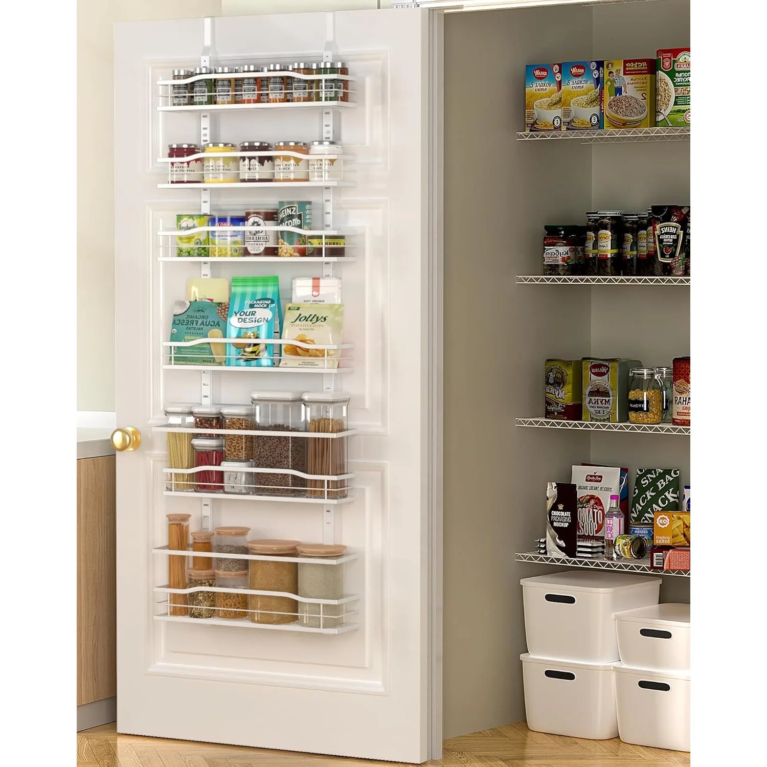 White 6-Tier Over Door Pantry Organizer, Pantry Organization Storage, Door Metal Hanging Spice Rack Basket Shelves