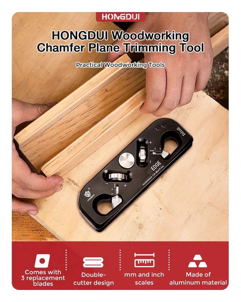 HONGDUI Woodworking Chamfer Plane with 3 Replacement Carbide Insert Double Cutter Edge Corner Plane Chamfering Planer for Quick Edge Trimming of Wood Specification: Feature: Package Included: |